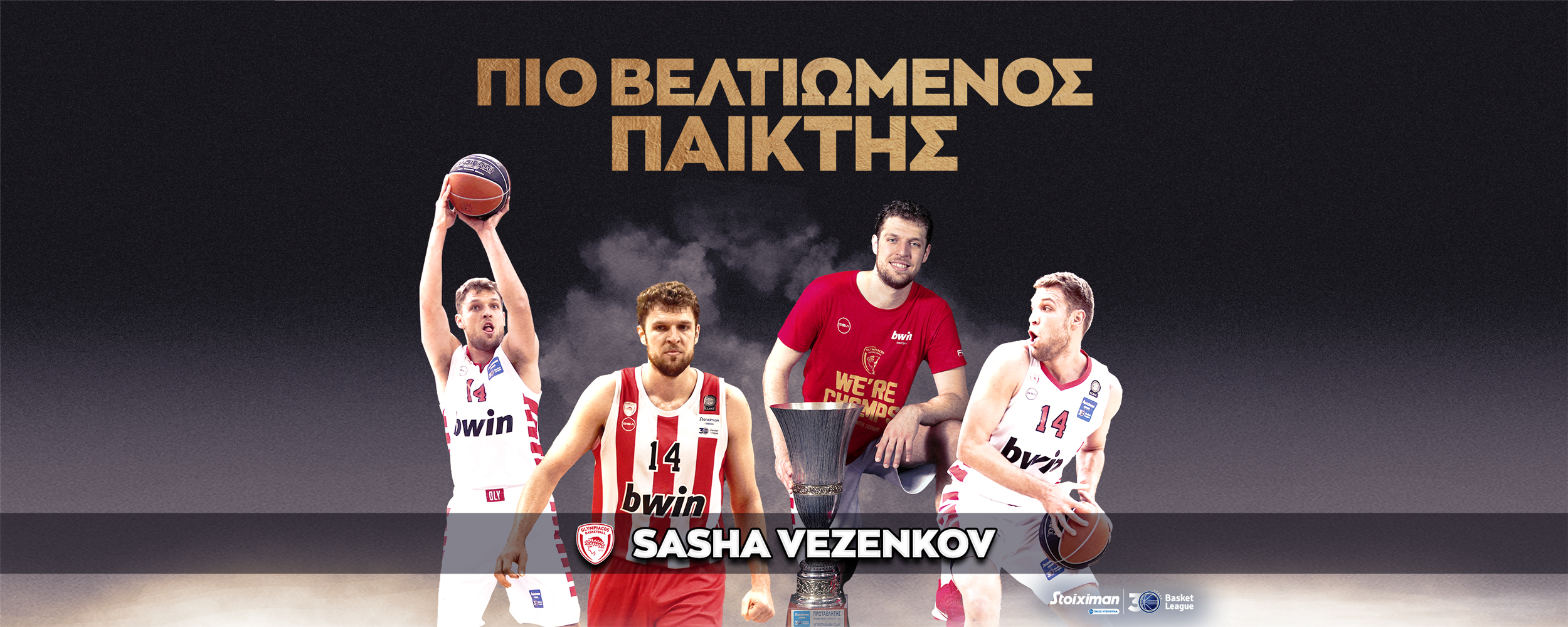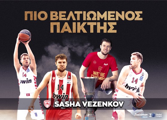 Άλλη μια διάκριση προστίθεται στην συλλογή του Σάσα Βεζένκοφ για την παρουσία του στην Stoiximan Basket League της σεζόν 2021-22. Ο 27χρονος φόργουορντ του Ολυμιπακού κατέκτησε τον πρώτο τίτλο Πρωταθλήματος Ελλάδας (και Κυπέλλου) στην καριέρα του, αναδείχθηκε Stoiximan MVP του 30ου Επαγγελματικού Πρωταθλήματος και μέλος της Καλύτερης Πεντάδας, αλλά και Πιο Βελτιωμένος Παίκτης.