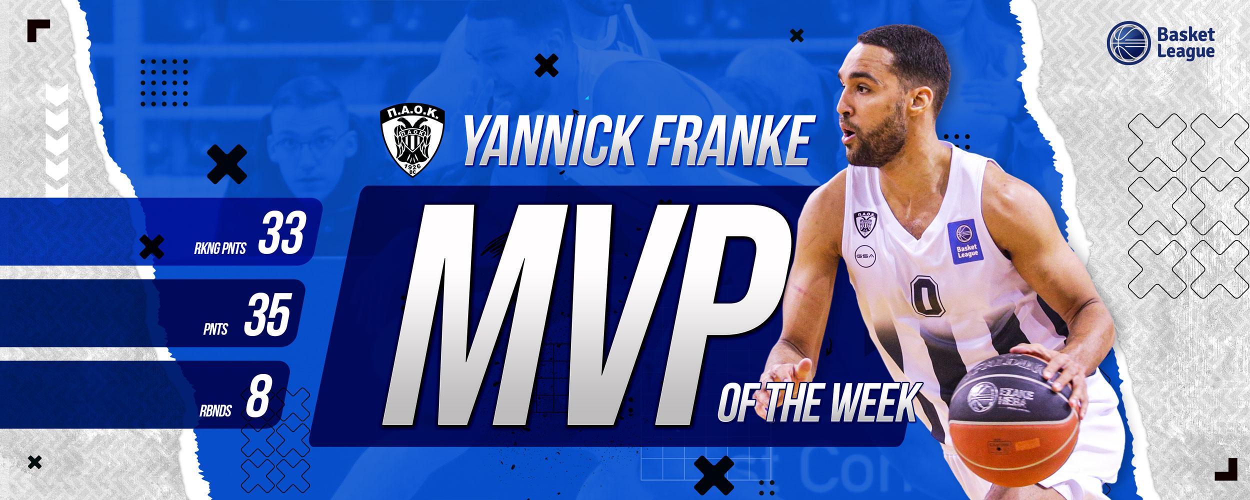 Ο Φράνκε με εντυπωσιακή εμφάνιση οδήγησε τον ΠΑΟΚ mateco στην εντός έδρας νίκη επί της Καρδίτσας ΒΙΟΛΟΓΙΚΟ ΧΩΡΙΟ και με 33 βαθμούς στο ranking – όσο και την πρώτη φορά – αναδείχθηκε MVP της 19ης Εβδομάδας της Basket League.
